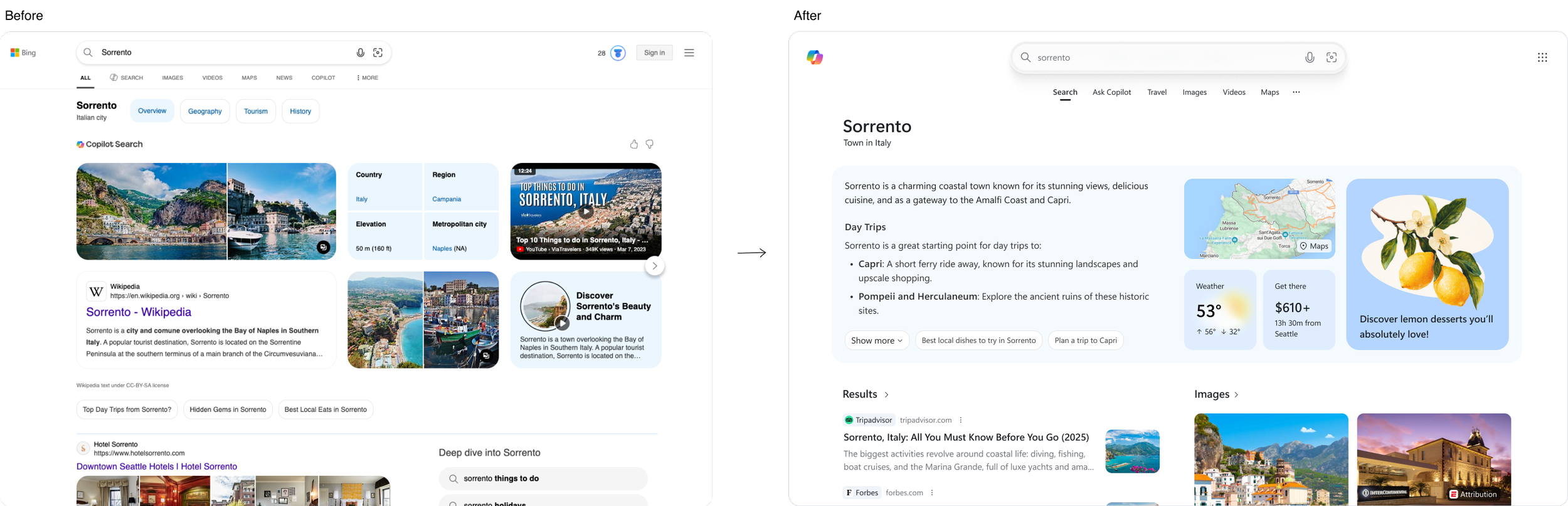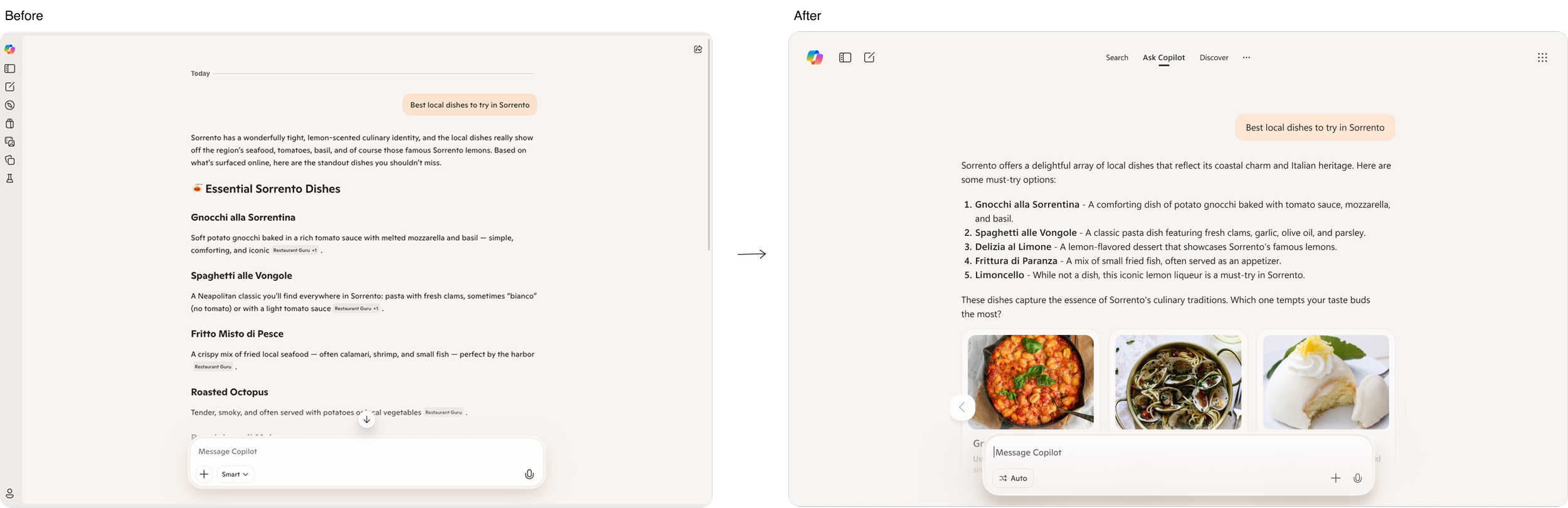 We created an ideal user flow to demonstrate the proposed UX architecture, positioning Copilot as the single entry point. Users begin with one unified composer for search, questions, and discovery, and are seamlessly directed to Search or Copilot chat based on intent rather than brand boundaries.